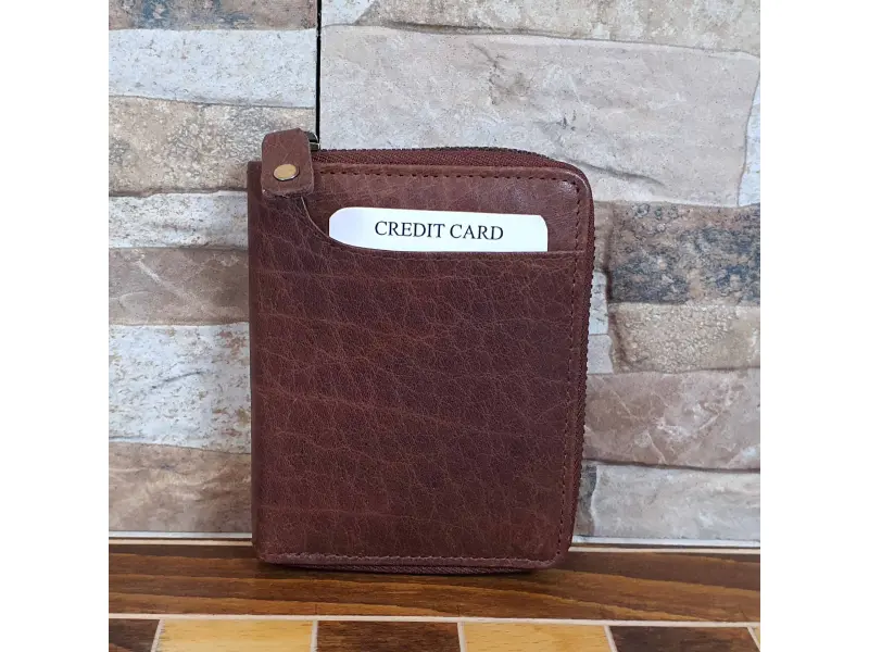 Θήκη επαγγελματικών καρτών από γνήσιο δέρμα σε καφέ χρώμα με φερμουάρ | Αξεσουάρ (ePazar.bg)