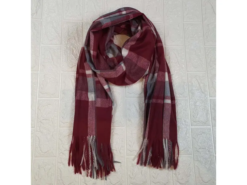Γυναικείο κασκόλ - Borena. Μοναδικό γυναικείο κασκόλ με αίσθηση κασμίρ. Πολύχρωμο γυναικείο κασκόλ με κυρίαρχο μπορντό χρώμα. Ποιοτικό κασκόλ από ηλεκτρονικό κατάστημα - ePazar.bg