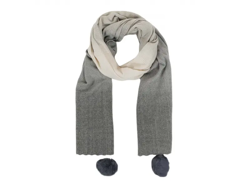 Μαλακό και άνετο γυναικείο κασκόλ, κατάλληλο τόσο για τις κρύες φθινοπωρινές μέρες όσο και για τη χειμερινή περίοδο. Γυναικείο κασκόλ με έναν ενδιαφέροντα συνδυασμό χρωμάτων με 65% βισκόζη και 35% μαλλί. Κασκόλ με αφαιρούμενες μπάλες από πούπουλα, που στερεώνεται με παραμάνα.