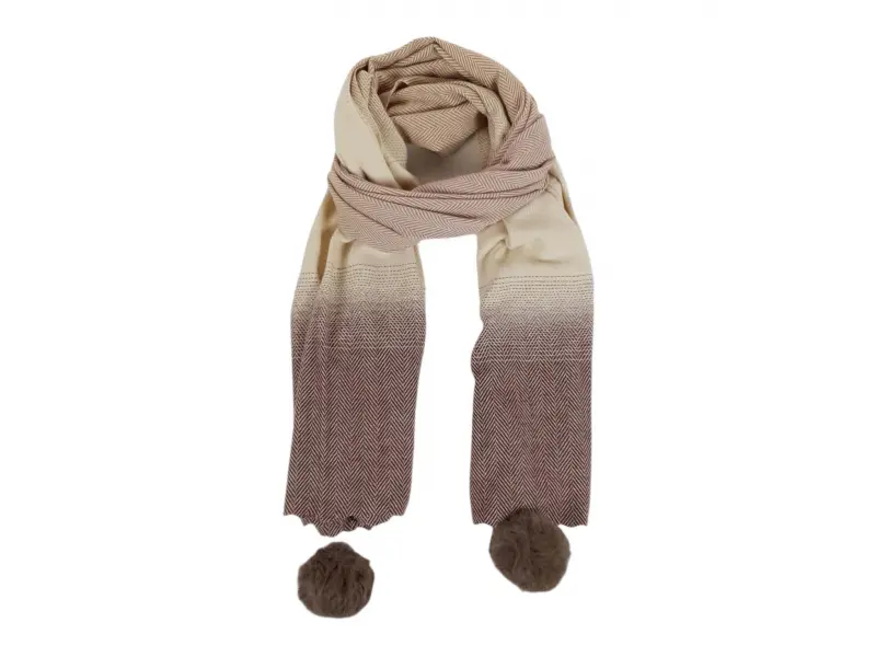 Μαλακό και άνετο γυναικείο κασκόλ, κατάλληλο τόσο για τις κρύες φθινοπωρινές μέρες όσο και για τη χειμερινή περίοδο. Γυναικείο κασκόλ με έναν ενδιαφέροντα συνδυασμό χρωμάτων με 65% βισκόζη και 35% μαλλί. Κασκόλ με αφαιρούμενες μπάλες από πούπουλα, που στερεώνεται με παραμάνα.