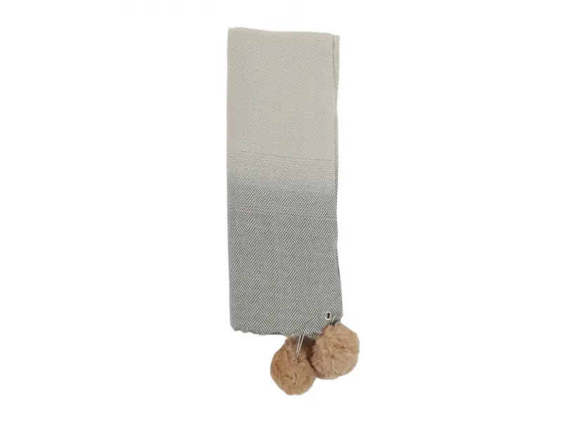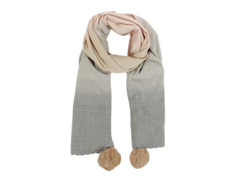 Μαλακό και άνετο γυναικείο κασκόλ, κατάλληλο τόσο για τις κρύες φθινοπωρινές μέρες όσο και για τη χειμερινή περίοδο. Γυναικείο κασκόλ με έναν ενδιαφέροντα συνδυασμό χρωμάτων με 65% βισκόζη και 35% μαλλί. Κασκόλ με αφαιρούμενες μπάλες από πούπουλα, που στερεώνεται με παραμάνα.