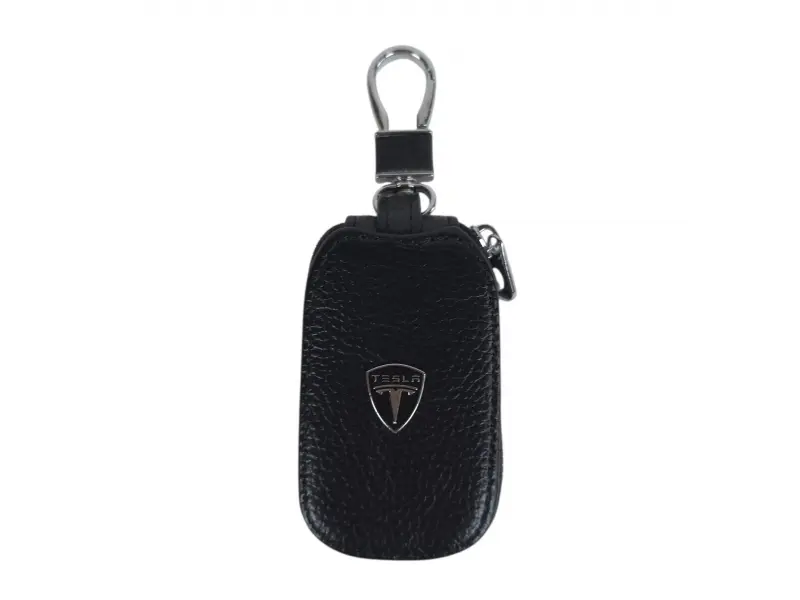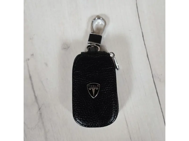 Μπρελόκ υψηλής ποιότητας από γνήσιο δέρμα σε μαύρο χρώμα. Ένα ιδανικό δώρο για τους λάτρεις και τους κατόχους αυτοκινήτων Tesla.