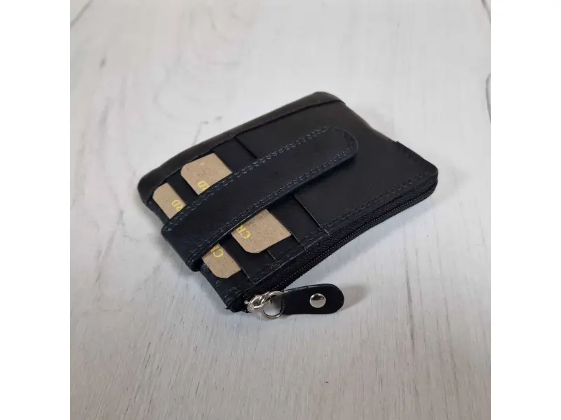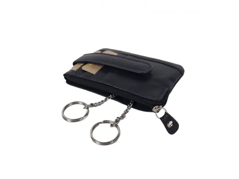 Πορτοφόλι υψηλής ποιότητας - μπρελόκ σε μαύρο χρώμα - Τσαντάκι για μπρελόκ από γνήσιο δέρμα. - Θήκη για χαρτονομίσματα. - Θήκη για κέρματα. - Θήκη για κάρτες και προσωπικά έγγραφα. - Δύο κρίκοι για κρέμασμα κλειδιών.
