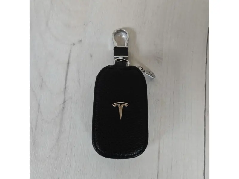 Κομψό μπρελόκ μάρκας Tesla Μπρελόκ υψηλής ποιότητας από γνήσιο δέρμα σε μαύρο χρώμα. Ένα ιδανικό δώρο για τους λάτρεις και τους κατόχους αυτοκινήτων Tesla.