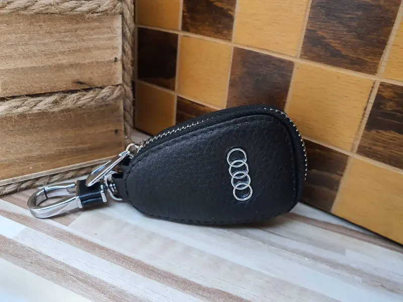 Μπρελόκ από γνήσιο δέρμα υψηλής ποιότητας με εύκολο άνοιγμα σε ασημένιο φερμουάρ. Ένα εξαιρετικό δώρο για τους λάτρεις και τους ιδιοκτήτες της μάρκας αυτοκινήτων Audi.