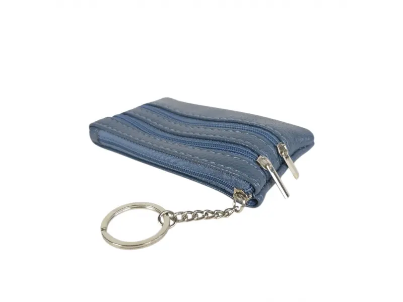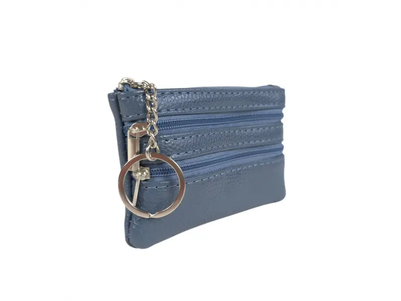Δερμάτινο μπρελόκ σε μπλε χρώμα - Τσαντάκι για μπρελόκ από γνήσιο δέρμα. - Θήκη για χαρτονομίσματα. - Δύο θήκες για κέρματα. - Μπρελόκ για κλειδιά.