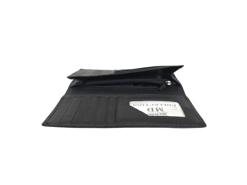 Μεγάλο ανδρικό πορτοφόλι σε μαύρο χρώμα - Ανδρικό πορτοφόλι από γνήσιο δέρμα. - Θέσεις για χαρτονομίσματα. - Θέσεις για κάρτες και προσωπικά έγγραφα. Τσέπη με φερμουάρ.