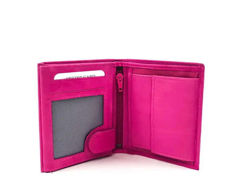 Γυναικείο πορτοφόλι από γνήσιο δέρμα, εισαγόμενο από την Ινδία, ένα εξαιρετικό συμπαγές μοντέλο με πολλές θήκες για κάρτες και επαγγελματικές κάρτες, θήκες για έγγραφα, θήκες για χαρτονομίσματα και θήκες για κέρματα. Πολύ άνετο ροζ δερμάτινο πορτοφόλι από απαλό στην αφή δέρμα.