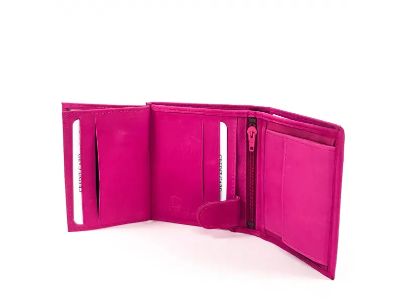 Ροζ άνετο πορτοφόλι - δέρμα. Άνετο δερμάτινο πορτοφόλι σε ροζ χρώμα από απαλό στην αφή γνήσιο δέρμα. Μικρό γυναικείο πορτοφόλι, εισαγόμενο από την Ινδία - ePazar.bg