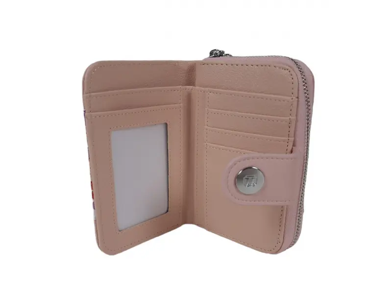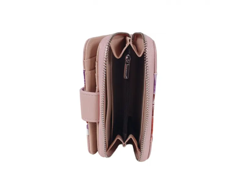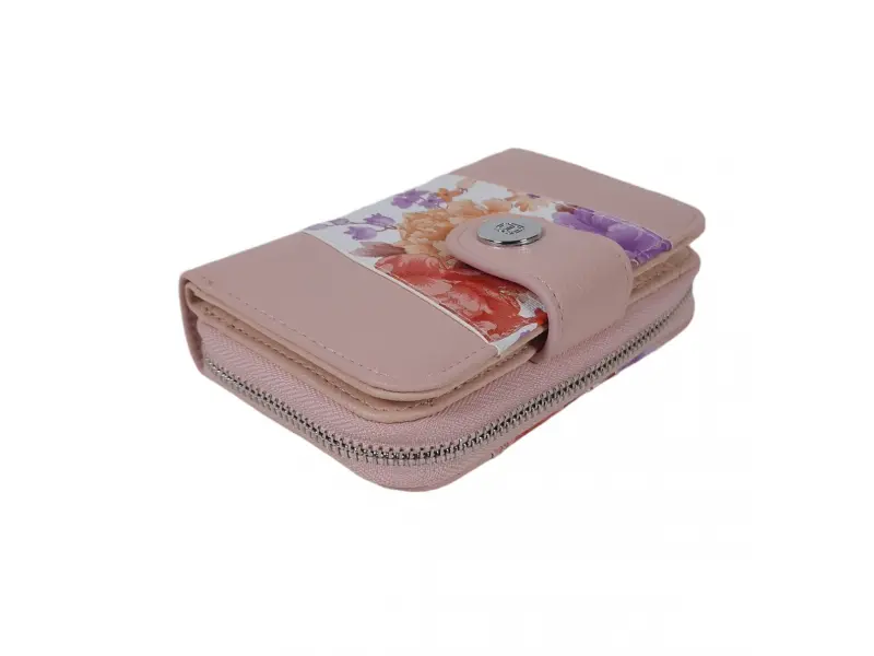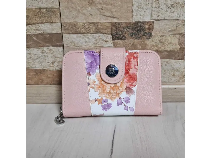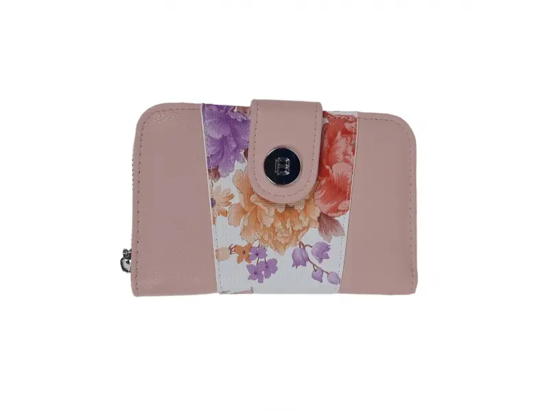 Κομψή γυναικεία τσάντα σε ροζ χρώμα - Γυναικείο πορτοφόλι από οικολογικό δέρμα. - Κλείσιμο με μαγνητικό κουμπί. - Θέσεις για κάρτες και έγγραφα. - Θήκη για χαρτονομίσματα. - Θήκη για κέρματα με φερμουάρ. - Η διάταξη των λουλουδιών μπορεί να είναι διαφορετική.