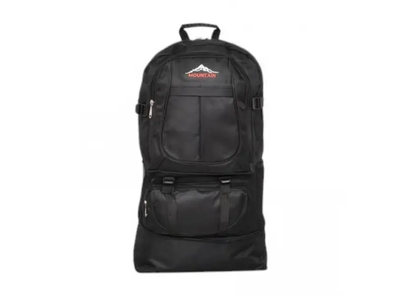 Μεγάλο σακίδιο πεζοπορίας κατασκευασμένο από ποιοτικό υλικό. Ανδρικό σακίδιο πλάτης με ρυθμιζόμενο μέγεθος και φερμουάρ. Μαύρο σακίδιο πλάτης κατάλληλο για βουνά και πεζοπορία.