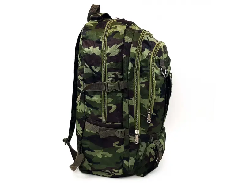 Μεγάλο στρατιωτικό σακίδιο πλάτης με πολλές θήκες, εξαιρετικό μοντέλο κατάλληλο για εκδρομές, κυνήγι και ψάρεμα. Τεράστιο σακίδιο παραλλαγής με ρυθμιζόμενους ιμάντες, λαβή μεταφοράς και άλλη μία για κρέμασμα, σακίδιο πλάτης με μπροστινή ζώνη που σφίγγει τον όγκο. Σακίδιο πλάτης παραλλαγής με θήκες για μπουκάλια και στις δύο πλευρές.