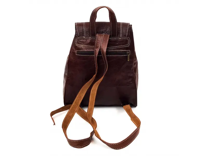 Καφέ σακίδιο πλάτης - Μαρόκο. Καφέ γυναικείο σακίδιο πλάτης από γνήσιο δέρμα, εισαγόμενο από το Μαρόκο. Σακίδιο πλάτης χειροποίητα επεξεργασμένο δέρμα, χωρίς τη χρήση χημικών. Δερμάτινο καφέ σακίδιο πλάτης - ePazar.bg