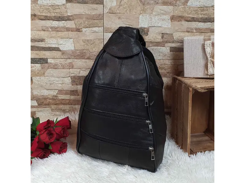 Γυναικείο σακίδιο πλάτης υψηλής ποιότητας - τσάντα από γνήσιο δέρμα αρνιού. Μαύρο σακίδιο πλάτης με μία κύρια θήκη με φερμουάρ, μια μικρή εσωτερική τσέπη με φερμουάρ και τρεις μπροστινές τσέπες με φερμουάρ. Μεγάλο σακίδιο πλάτης με άνετα ρυθμιζόμενα λουράκια που μπορούν να κλείσουν με φερμουάρ και δυνατότητα να φορεθεί ως τσάντα.