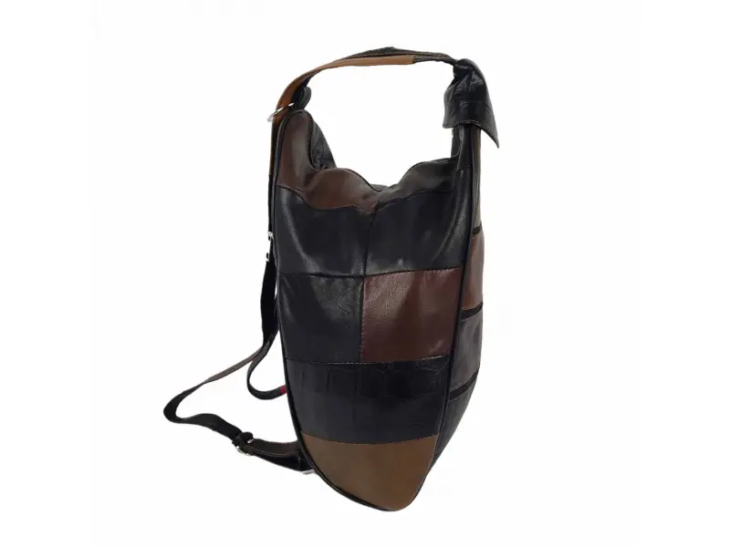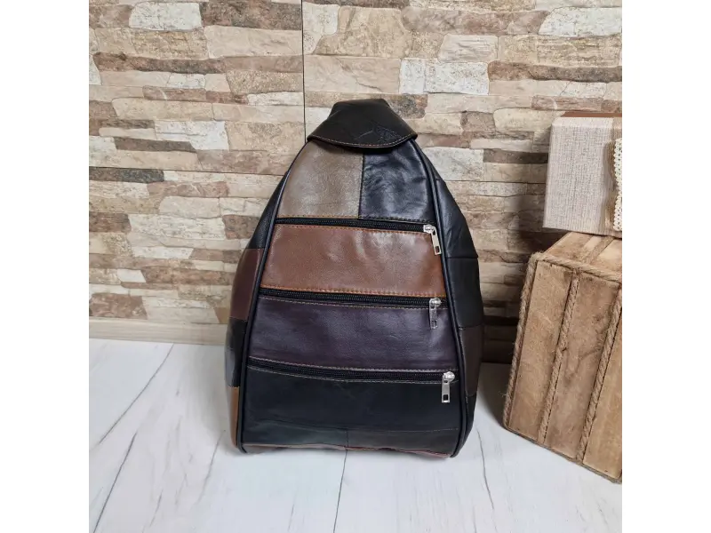 Γυναικείο σακίδιο πλάτης υψηλής ποιότητας - τσάντα από γνήσιο δέρμα αρνιού. Πολύχρωμο σακίδιο πλάτης με μία κύρια θήκη με φερμουάρ, μια μικρή εσωτερική τσέπη με φερμουάρ και τρεις μπροστινές τσέπες με φερμουάρ. Μεγάλο σακίδιο πλάτης με άνετα ρυθμιζόμενα λουράκια που μπορούν να κλείσουν με φερμουάρ και δυνατότητα να φορεθεί ως τσάντα.