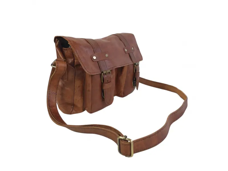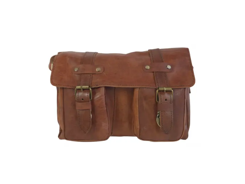 Ανθεκτική ανδρική τσάντα από γνήσιο δέρμα σε ενδιαφέρον καφέ χρώμα και κλείσιμο με μεταλλικές αγκράφες και μηχανισμό. Ποιοτική ανδρική τσάντα, χειροποίητη και εισαγόμενη από το Μαρόκο.