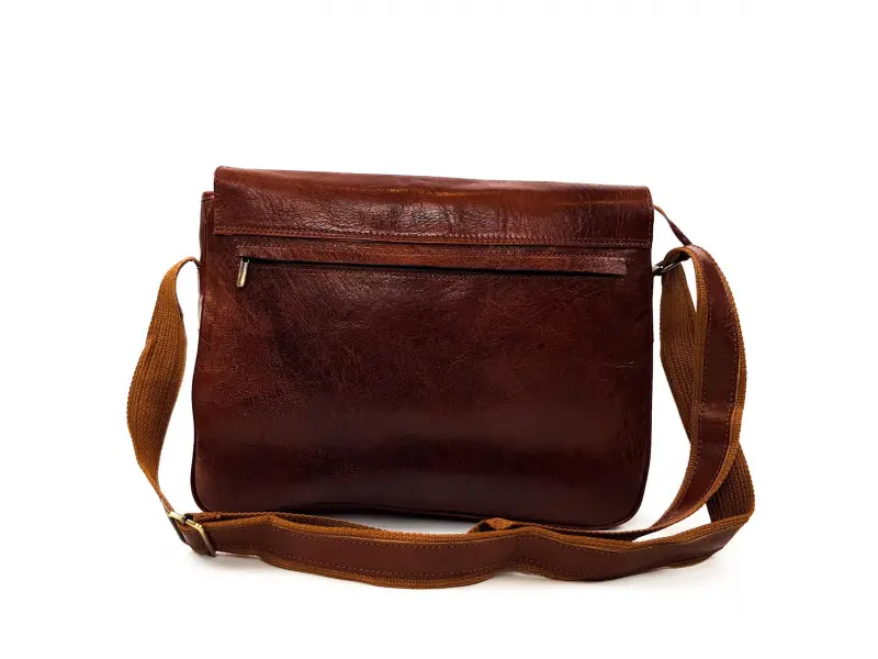 Ανδρική τσάντα με καπάκι από φυσικό δέρμα κατασκευασμένο στο Μαρόκο. Ανδρική δερμάτινη τσάντα ώμου με ρυθμιζόμενη μακριά λαβή από δέρμα και ύφασμα. Μία μεγάλη θήκη με φερμουάρ, εσωτερική δερμάτινη επένδυση, χώρος για στυλό και μολύβια, θήκες για κάρτες και έγγραφα. Ανδρική σταθερή τσάντα ώμου σε καφέ απόχρωση με πίσω τσέπη με φερμουάρ.
