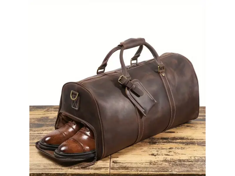 Μια ποιοτική τσάντα ταξιδιού με βολικές θήκες - Τσάντα κατασκευασμένη από ειδικά επεξεργασμένο γνήσιο δέρμα. - Μία κύρια θήκη με φερμουάρ. - Εσωτερικά μικρά χωρίσματα - Πλαϊνό διαμέρισμα για παπούτσια με φερμουάρ. - Άνετες λαβές μεταφοράς. - Μακριά ρυθμιζόμενη λαβή.