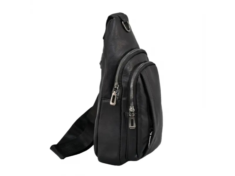 Κομψή ανδρική τσάντα χιαστί - Ανδρική τσάντα από οικολογικό δέρμα. - Μια ανδρική τσάντα που μπορεί να φορεθεί στο στήθος, τον ώμο ή την πλάτη σαν σακίδιο πλάτης. - Μία κύρια θήκη με φερμουάρ. Εσωτερική τσέπη με φερμουάρ. - Δύο μπροστινές θήκες. Ρυθμιζόμενος ιμάντας ώμου.