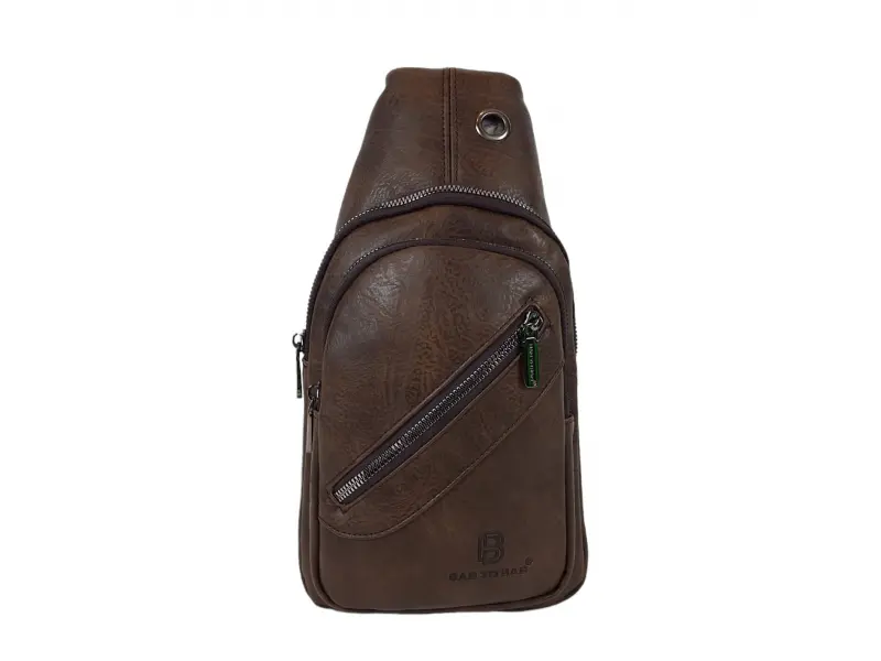 Ανδρική τσάντα με άνετο λουράκι ώμου - Ανδρική τσάντα από οικολογικό δέρμα. - Μια ανδρική τσάντα που μπορεί να φορεθεί στο στήθος, τον ώμο ή την πλάτη σαν σακίδιο πλάτης. - Μία κύρια θήκη με φερμουάρ. - Εσωτερική τσέπη χωρίς φερμουάρ. - Δύο μπροστινές τσέπες με φερμουάρ. Ρυθμιζόμενος ιμάντας ώμου.