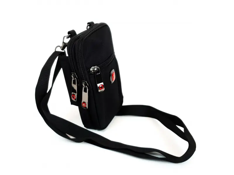 Μίνι ανδρική τσάντα, Μικρή ανδρική τσάντα από ανθεκτικό ύφασμα με έμβλημα σταυρού. Ποιοτική μικρή ανδρική τσάντα με δυνατότητα σύνδεσης σε ζώνη ή μεταφοράς στον ώμο με ρυθμιζόμενη λαβή.