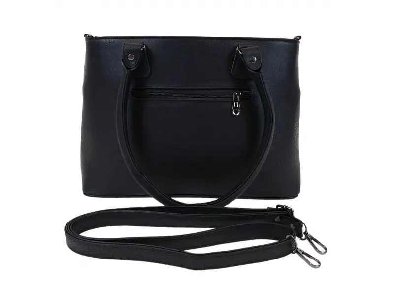 Τσάντα χειρός κατασκευασμένη στη Βουλγαρία - Τσάντα χειρός από οικολογικό δέρμα. - Τρεις θήκες με κλείσιμο με φερμουάρ. - Μπροστινή τσέπη με μαγνητικό κλείσιμο. - Χώρος για τηλέφωνο και κλειδιά. Εσωτερική τσέπη με φερμουάρ. - Πίσω τσέπη με φερμουάρ. Μακριά λουράκια. - Εξαιρετικά μακριά λαβή.
