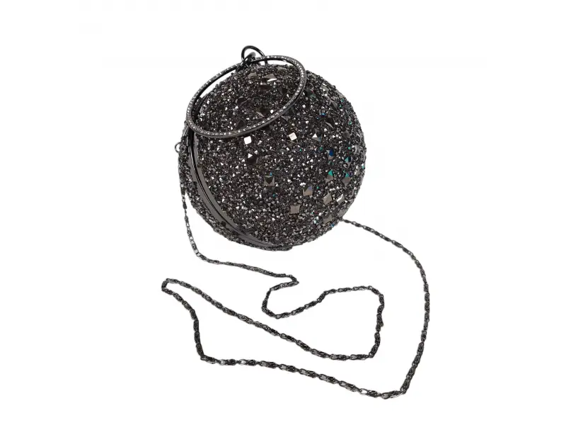 Ενδιαφέρουσα κομψή τσάντα σε σφαιρικό σχήμα - Επίσημη τσάντα χειρός με μία θήκη. - Άνοιγμα και κλείσιμο με μηχανισμό. - Μεταλλικό περίγραμμα. - Λαβή για μεταφορά στο χέρι. - Λαβή τύπου μακριάς αλυσίδας.