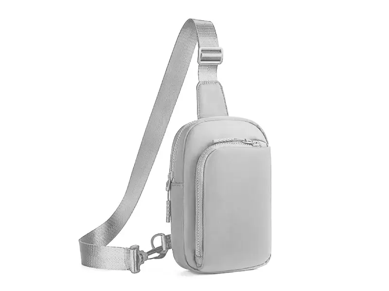 Αθλητική τσάντα για μεταφορά στο στήθος, τον ώμο ή την πλάτη, τύπου σακιδίου πλάτης, κατασκευασμένη από υλικό υψηλής ποιότητας. Γκρι τσάντα με βολικές θήκες και ανθεκτικά φερμουάρ με άνετο ρυθμιζόμενο λουράκι.