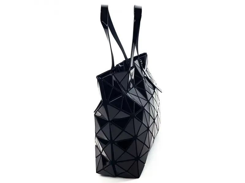 Ενδιαφέρουσα γυναικεία τσάντα χειρός σε μαύρο χρώμα, με κοντή λαβή και μία μεγάλη θήκη που κλείνει με φερμουάρ. Τσάντα με ορθογώνια σχήματα.