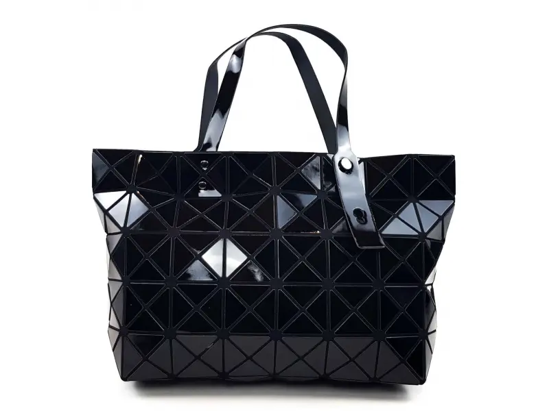 Μαύρη ενδιαφέρουσα τσάντα. Ενδιαφέρουσα γυναικεία τσάντα τρέχοντος μοντέλου σε μαύρο χρώμα με κοντή λαβή και μία μεγάλη θήκη που κλείνει με φερμουάρ. Τσάντα με ορθογώνια σχήματα - ePazar.bg