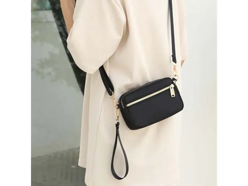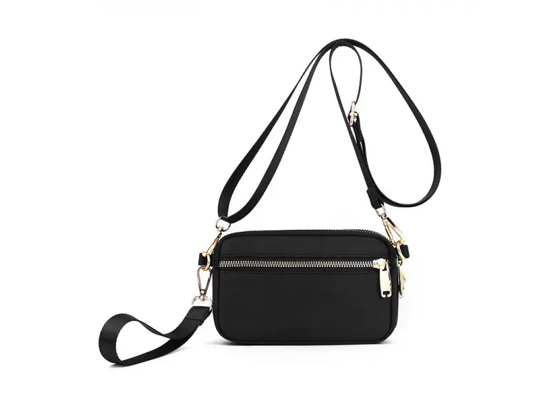 Μικρή καθημερινή τσάντα χειρός - Μικρή υφασμάτινη τσάντα χειρός. - Τρεις κύριες θήκες με φερμουάρ. - Μπροστινή τσέπη με φερμουάρ. - Πίσω τσέπη με φερμουάρ. - Άνετη μακριά ρυθμιζόμενη λαβή. - Λαβή για μεταφορά στο χέρι.