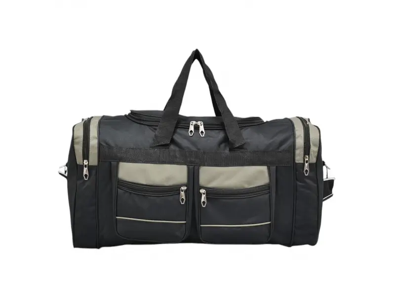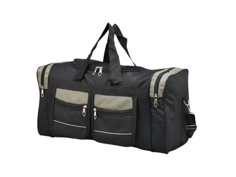Τσάντα ταξιδιού μήκους 60 εκ. με βολικές θήκες και ανθεκτικά φερμουάρ. Μαύρη τσάντα από ποιοτικό ύφασμα με άνετες λαβές και μια επιπλέον μακριά λαβή.