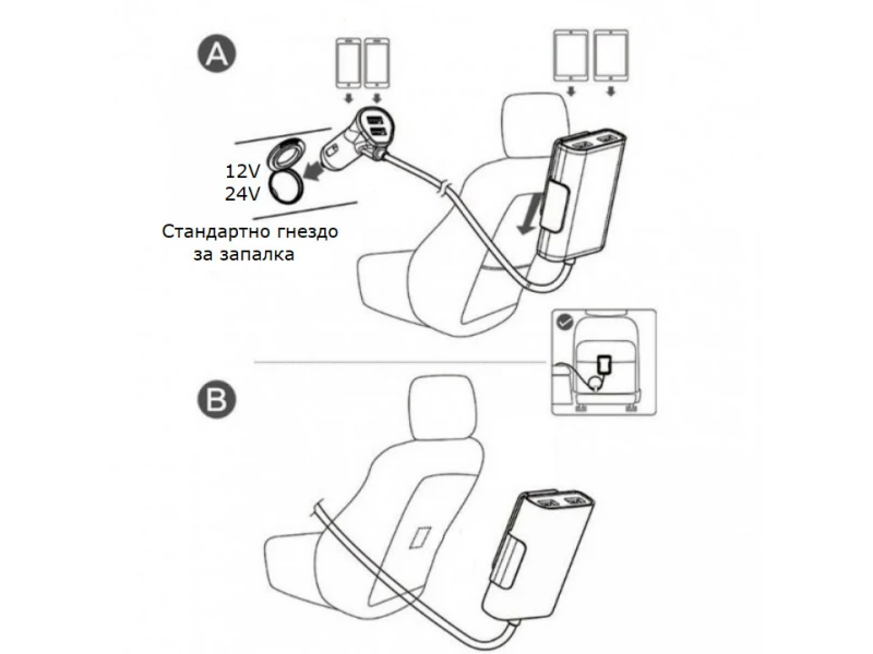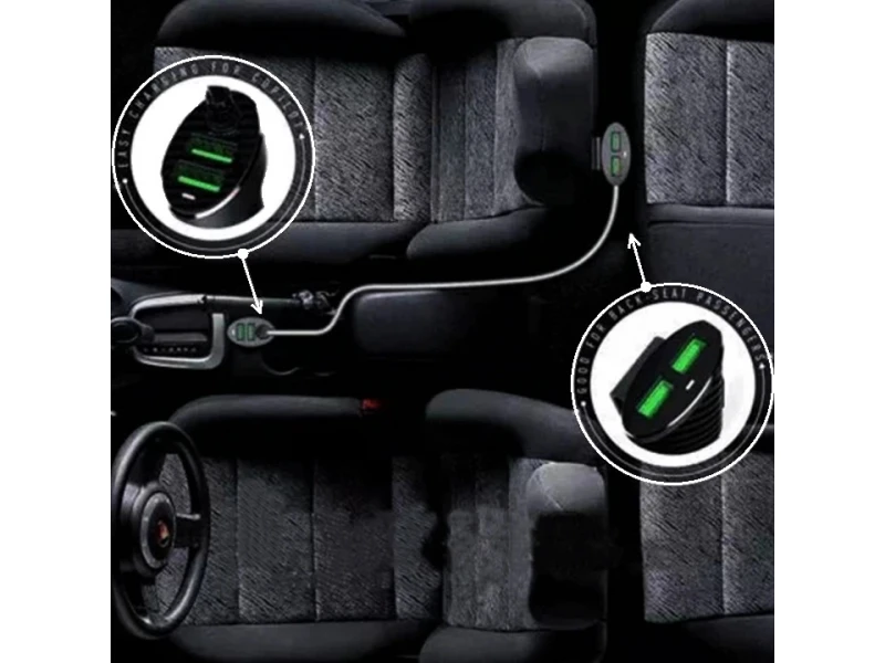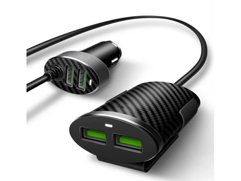 Φορτιστής αυτοκινήτου USB με 4(2+2) θύρες USB με προέκταση για πίσω επιβάτες