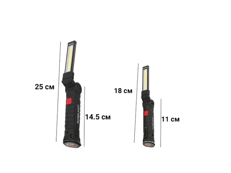 Πτυσσόμενο φωτιστικό εργασίας για εργασίες επισκευής. Μίνι μέγεθος: 110 x 47 mm. Τρεις τρόποι λειτουργίας: 100% COB, οικονομικός 50% COB και LED.