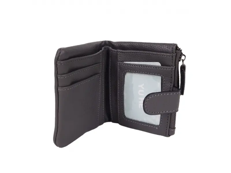 Μικρό γυναικείο πορτοφόλι - Γυναικείο πορτοφόλι από οικολογικό δέρμα. - Κλείσιμο με κουμπί κλικ. - Θήκες για κάρτες. - Θήκη για χαρτονομίσματα. - Τσέπη για κέρματα με φερμουάρ.