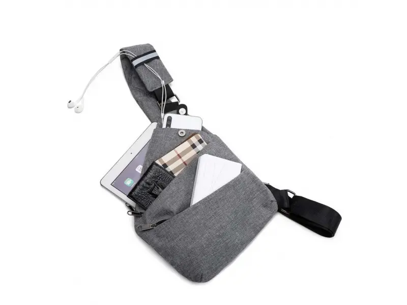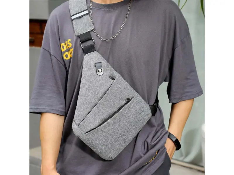 - Μια ανδρική τσάντα που μπορεί να φορεθεί στο στήθος, τον ώμο ή την πλάτη σαν σακίδιο πλάτης.
