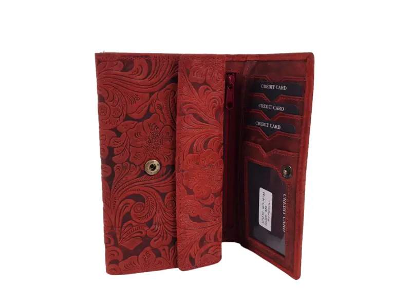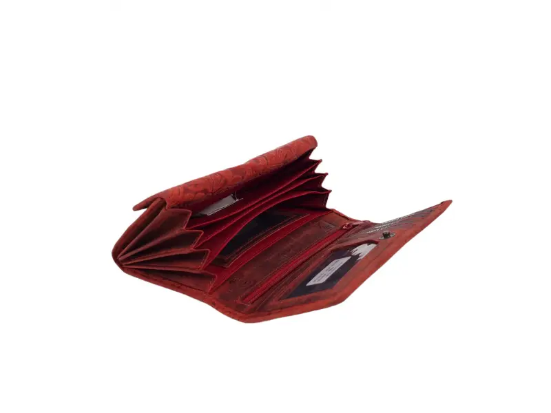 Κόκκινο γυναικείο πορτοφόλι από γνήσιο, χειροποίητο δέρμα. Μοναδικό γυναικείο πορτοφόλι με πολλές υποδοχές για κάρτες και έγγραφα, θήκη για χαρτονομίσματα, θήκη για πορτοφόλι και θήκη για κέρματα.
