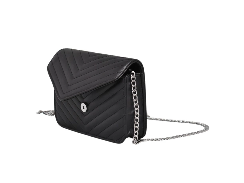 Μικρή μαύρη τσάντα χειρός - Μικρή τσάντα χειρός από οικολογικό δέρμα. - Μία κύρια θήκη με φερμουάρ και μαγνητικό κλείσιμο. - Λαβή τύπου αλυσίδας.