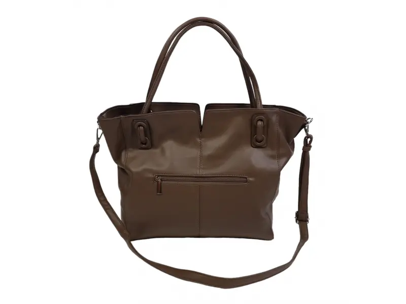 Μεγάλη τσάντα χειρός - Τσάντα χειρός από οικολογικό δέρμα. Ένα κύριο διαμέρισμα χωρισμένο σε δύο με μια τσέπη με φερμουάρ. - Μικρή εσωτερική τσέπη με φερμουάρ. - Θήκη τηλεφώνου. - Πίσω τσέπη με φερμουάρ. - Άνετες λαβές μεταφοράς. - Μακριά ρυθμιζόμενη λαβή.