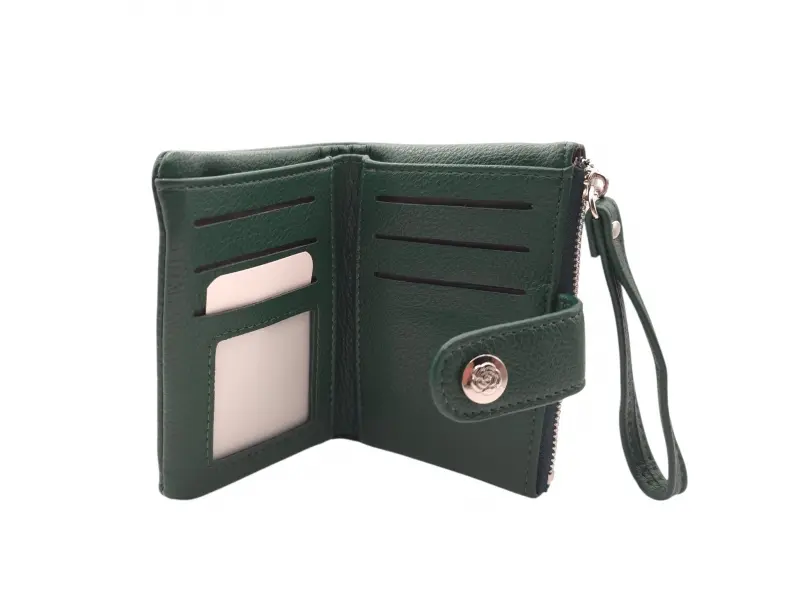 Γυναικεία τσάντα σε μοντέρνο λαδί χρώμα - Γυναικείο πορτοφόλι από οικολογικό δέρμα. - Στερέωση με κουμπί κλικ. - Θήκες για κάρτες. - Θήκη για χαρτονομίσματα. - Τσέπη για κέρματα με φερμουάρ.