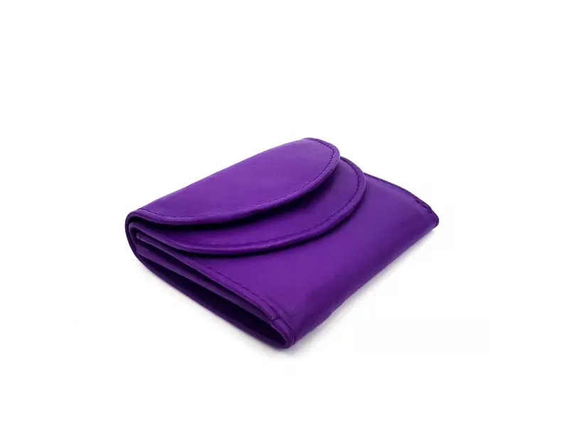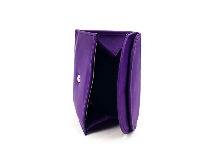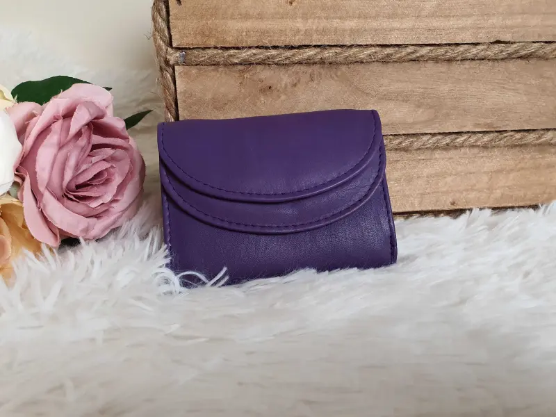 Γυναικείο μωβ πορτοφόλι μεσαίου μεγέθους. Γυναικείο πορτοφόλι σε βαθύ μωβ χρώμα από φυσικό γνήσιο δέρμα. Υψηλής ποιότητας μωβ πορτοφόλι με χώρο για χαρτονομίσματα και κέρματα - ePazar.bg