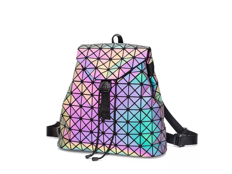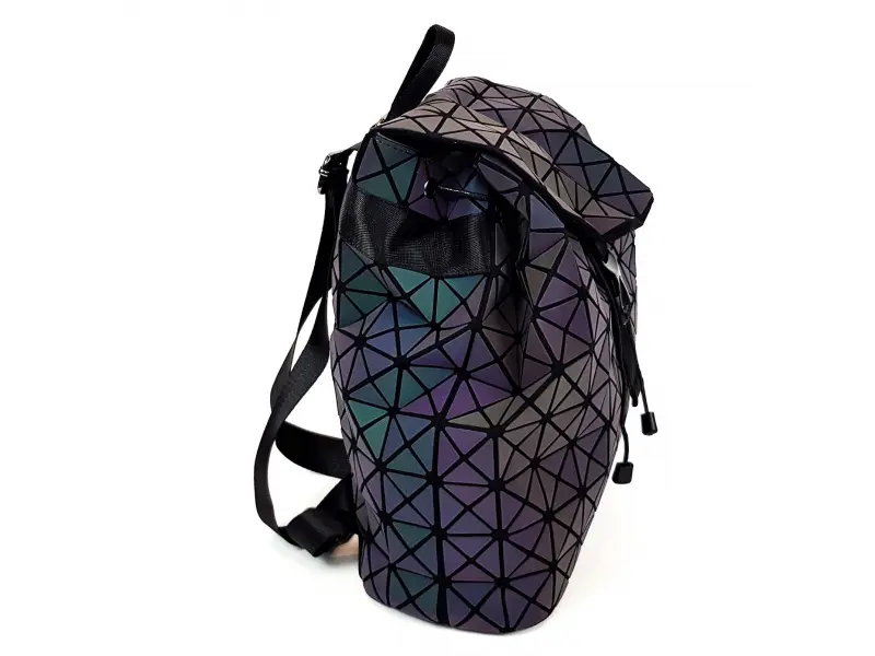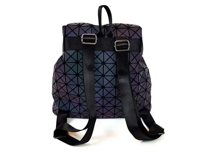 Ενδιαφέρουσα γυναικεία τσάντα πλάτης με μία μεγάλη θήκη, η οποία κουμπώνει με κορδόνια και κλείνει με καπάκι. Γυναικείο σακίδιο πλάτης σε χρώμα χαμαιλέοντα, το οποίο αλλάζει χρώμα ανάλογα με το φως. Σακίδιο πλάτης με ρυθμιζόμενα λουράκια και λαβή για κρέμασμα.