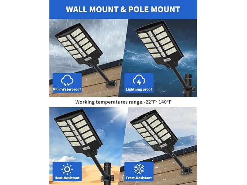 Η ηλιακή λάμπα LED LYLU 1400W είναι μια ισχυρή και ενεργειακά αποδοτική λύση για φωτισμό αυλών, δρόμων, χώρων στάθμευσης, κήπων και βιομηχανικών χώρων . Με 780 διόδους COB , υψηλή φωτεινότητα και έξυπνους τρόπους λειτουργίας , αυτή η λάμπα παρέχει βέλτιστο φωτισμό σε όλες τις συνθήκες .