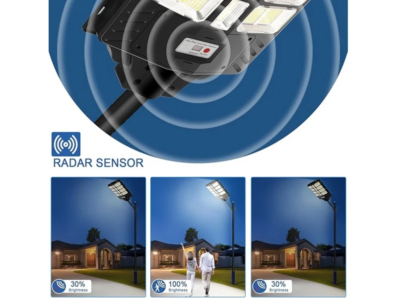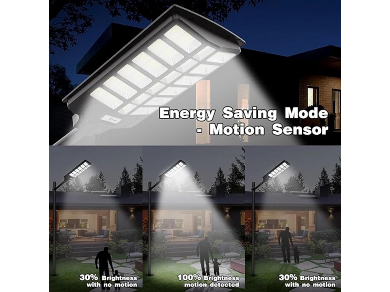 Αυτή η ηλιακή λάμπα LED LYLU 1800W προσφέρει μέγιστο φωτισμό με 936 διόδους COB και υψηλή φωτεινότητα . Σχεδιασμένο για ακραίες καιρικές συνθήκες , αποτελεί ιδανική λύση για φωτισμό δρόμων, αυλών, χώρων στάθμευσης και βιομηχανικών χώρων , εξασφαλίζοντας απόδοση και εξοικονόμηση ενέργειας . Κύρια χαρακτηριστικά: ✔ Αριθμός διόδων: 936 – εξαιρετικά φωτεινός φωτισμός με φως 6500K (κρύο λευκό, χωρίς κίτρινη απόχρωση). ✔ Ισχύς COB: 1800W – ισχυρός φωτισμός για μεγάλους χώρους. ✔ Ευρυγώνιος φωτισμός: 220° αμφίδρομη κατανομή για μεγαλύτερη εμβέλεια . ✔ Αριθμός τμημάτων: 30 – ομοιόμορφος φωτισμός χωρίς σκοτεινές περιοχές . ✔ Αντοχή στο νερό: IP65 – ανθεκτικό στη βροχή και το χιόνι και σε ακραίες καιρικές συνθήκες. ✔ Εύρος θερμοκρασίας: από -20°C έως +65°C – κατάλληλο για κάθε κλίμα. ✔ Ανθεκτικό υλικό: PVC / ABS - ανθεκτικό σε κρούσεις και διάβρωση. ✔ Διαστάσεις: 74,93 x 35 x 7,5 cm – μεγάλες διαστάσεις για καλύτερο φωτισμό μεγαλύτερων περιοχών . Έξυπνοι τρόποι λειτουργίας: Λειτουργία αισθητήρα κίνησης – η λάμπα ανάβει με φωτεινότητα 100% όταν ανιχνεύεται κίνηση και μειώνεται στο 30% μετά από 15 δευτερόλεπτα . Λειτουργία από το σούρουπο έως την αυγή – αυτόματη ενεργοποίηση το σούρουπο και αυτόματη απενεργοποίηση με την ανατολή του ηλίου . Λειτουργία συγχρονισμού – ρύθμιση χρόνου μέσω τηλεχειριστηρίου : 2 / 3 / 5 / 6 / 8 ώρες , καθώς και ρύθμιση φωτεινότητας από 25% έως 100% . Γιατί να επιλέξετε το LYLU 1800W; ✔ Λειτουργεί εξ ολοκλήρου με ηλιακή ενέργεια - δεν χρειάζεται ηλεκτρική ενέργεια . ✔ Κατάλληλο για μεγάλους χώρους – ιδανικό για δρόμους, χώρους στάθμευσης, εργοτάξια και ανοιχτούς χώρους . ✔ Εύκολη εγκατάσταση και συντήρηση – δεν χρειάζονται πρόσθετα καλώδια. Με την ηλιακή ενέργεια και την καινοτομία, εξασφαλίστε αποδοτικό και ισχυρό φωτισμό!