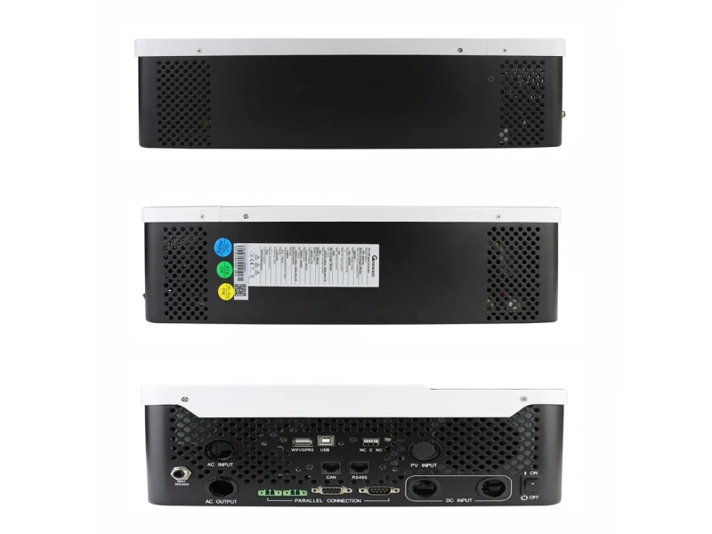 Ο Growatt SPF 5000 ES είναι ένα κόσμημα για οικονομικά φωτοβολταϊκά συστήματα. Το καλό με αυτόν τον μετατροπέα είναι ότι, με λίγα χρήματα, θα αποκτήσετε έναν μετατροπέα που λειτουργεί με ή χωρίς δίκτυο και φτάνει στην μέγιστη ισχύ του ως υβριδικός μετατροπέας.Μέγιστη είσοδος τάσης 450V. Το αναφέρω αυτό ώστε να προσέχετε όταν προσαρμόζετε τα string σας. Ας μην υπερβαίνει η συνολική τάση που εισάγετε σε αυτόν τα 400V. Ο μετατροπέας φορτίζει και αποφορτίζει δύο τύπους μπαταριών: Li-Io-Po και γέλης. Η μέγιστη τάση φόρτισης είναι 51V. Ο νησιωτικός μετατροπέας της Growatt διαθέτει λειτουργίες προστασίας από επικίνδυνη αποφόρτιση ανά τύπο μπαταρίας. Αυτό το μοντέλο είναι ο πιο ισχυρός από αυτή την κατηγορία. Για μεγαλύτερες ισχύς, μπορείτε να τα συνδέσετε παράλληλα με το καλώδιο που περιλαμβάνεται στη συσκευασία. Η παρακολούθηση πραγματοποιείται μέσω WiFi stick. Η σειρά Growatt SPF δεν μπορεί να επιστρέψει το υπόλοιπο του παραγόμενου ή αποθηκευμένου ρεύματος!Ικανότητα: 5 kWΤύπος: Μονοφασικός υβριδικόςΔιαστάσεις: 330 x 485 x 135 mmΒάρος: 12 kgΤύπος εισόδου: MC4Μέγιστη DC ισχύς: 6000 WΜέγιστη DC τάση: 450 VΕύρος MPP DC τάσης: 120-430 VΑρχική τάση: 120 VΑριθμός MPP trackers: 1Αριθμός strings ανά MPP tracker: 1Μέγιστο ρεύμα Κ.Σ. στην είσοδο A/B: 18 AΜέγιστο εναλλασσόμενο ρεύμα στην έξοδο: 22 AΤύποι μπαταριών: Μολυβδενίου-οξέος ή Λιθίου-ιόντωνΕύρος τάσης μπαταριών: 48 VΜέγιστο ρεύμα φόρτισης/εκφόρτισης: 100 AΟνομαστική ισχύς σε λειτουργία εφεδρικής τροφοδοσίας: 5000 W