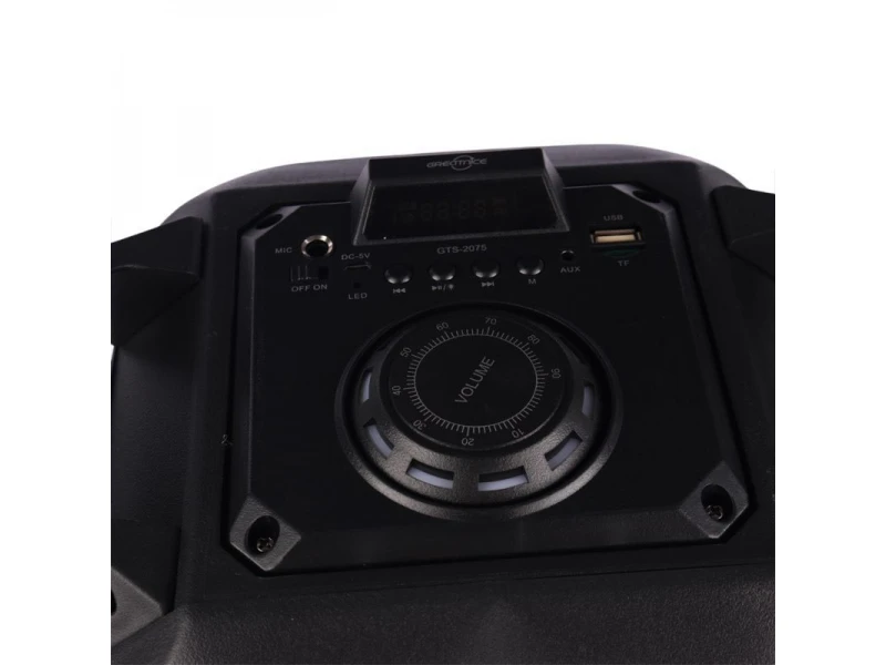 Ζήστε το τέλειο καραόκε με το Greatnice GTS-2075 - ένα ηχείο καραόκε με δύο ισχυρά ηχεία 6,5" που συνδυάζει ισχυρό ήχο, στυλ και πολυλειτουργικότητα. Επωφεληθείτε από τη συνδεσιμότητα Bluetooth, την αναπαραγωγή καρτών USB και MicroSD και τη μπαταρία μεγάλης διάρκειας και φορτίστε τη συσκευή άνετα μέσω USB.