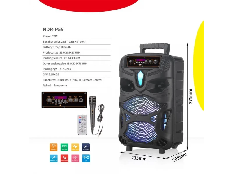 Ηχείο Karaoke NDR-P55 8'' με Bluetooth και μικρόφωνο – Ιδανικό για πάρτι