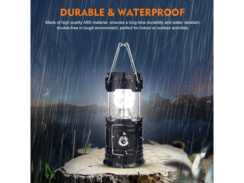 Το πολυλειτουργικό φανάρι κάμπινγκ LED SH-5800T είναι η ιδανική λύση για όποιον αγαπά να περνάει χρόνο σε εξωτερικούς χώρους - κατασκηνωτές, κυνηγούς, ψαράδες ή ταξιδιώτες. Χάρη στον καινοτόμο σχεδιασμό του με ενσωματωμένο ηλιακό πάνελ και τη δυνατότητα επαναφόρτισης, αυτό το φανάρι παρέχει αξιόπιστο φωτισμό ακόμα και στα πιο απομακρυσμένα μέρη χωρίς πρόσβαση σε ηλεκτρικό ρεύμα. Εκτός από ένα κλασικό φανάρι, το SH-5800T μετατρέπεται σε επιτραπέζιο φωτιστικό και διαθέτει έξοδο USB για τη φόρτιση ενός τηλεφώνου, καθιστώντας το απαραίτητο αξεσουάρ για κάθε περίσταση.