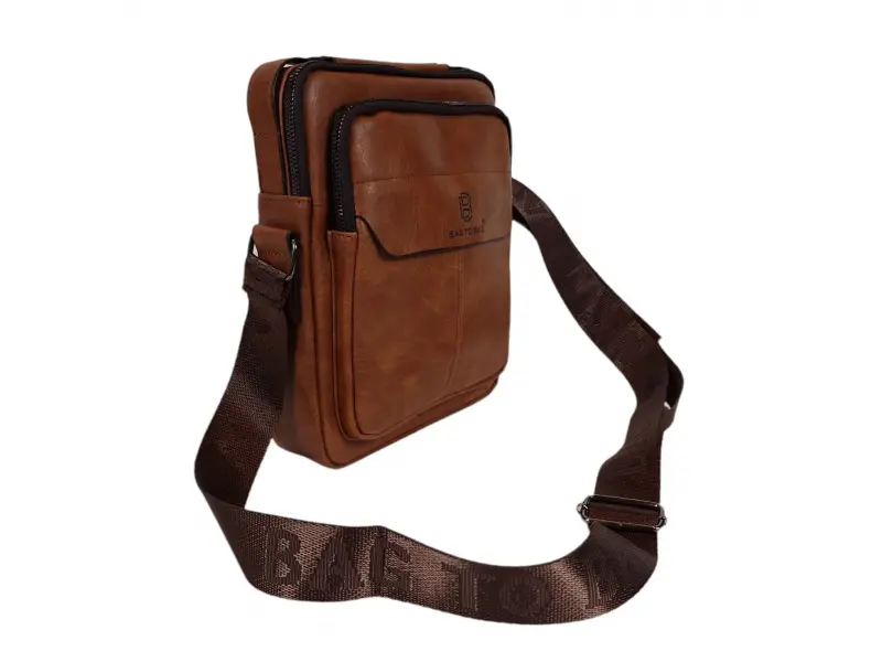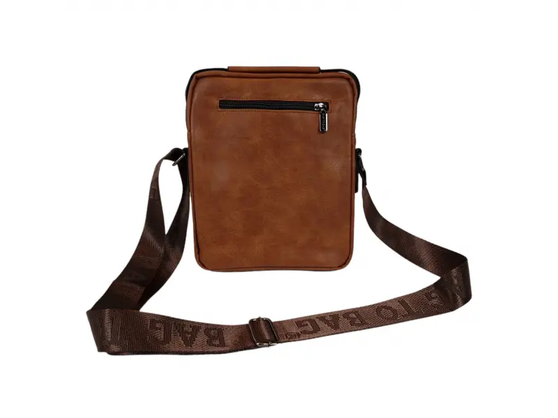 Ανδρική τσάντα από ποιοτικό οικολογικό δέρμα σε καφέ χρώμα. Άνετη τσάντα με μία κύρια θήκη με φερμουάρ, μικρή εσωτερική τσέπη με φερμουάρ, δύο μπροστινές τσέπες με φερμουάρ και πίσω τσέπη με φερμουάρ. Ανθεκτική ανδρική τσάντα με άνετη λαβή για μεταφορά στο χέρι και ρυθμιζόμενη μακριά λαβή.