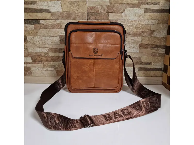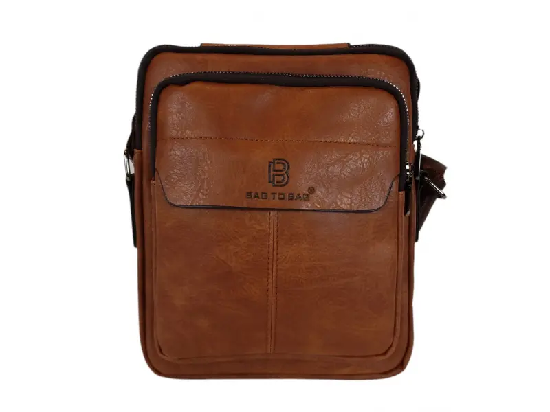 Μεσαία ανδρική τσάντα από οικολογικό δέρμα Ανδρική τσάντα από ποιοτικό οικολογικό δέρμα σε καφέ χρώμα. Άνετη τσάντα με μία κύρια θήκη με φερμουάρ, μικρή εσωτερική τσέπη με φερμουάρ, δύο μπροστινές τσέπες με φερμουάρ και πίσω τσέπη με φερμουάρ. Ανθεκτική ανδρική τσάντα με άνετη λαβή για μεταφορά στο χέρι και ρυθμιζόμενη μακριά λαβή.